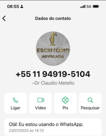Metello e Bellucco Advogados Associados e seus sócios, informam que terceiros estão entrando em contato por mensagens de texto de whatsapp se passando por advogados deste escritório, sem quaisquer autorizações ou procurações para representação da sociedade de advogados.